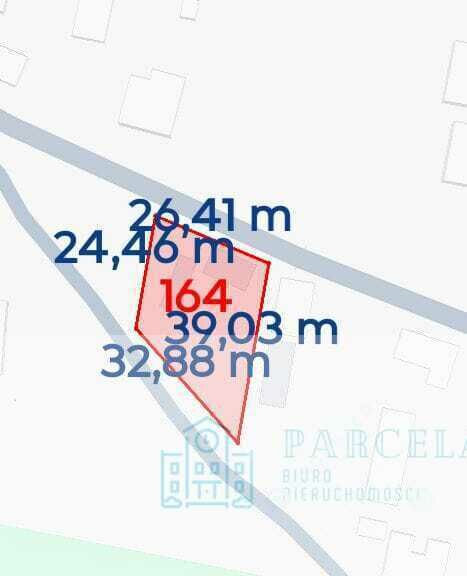 Pierwsza działka (nr działki 164 trapez) ma powierzchnię 1000m2.