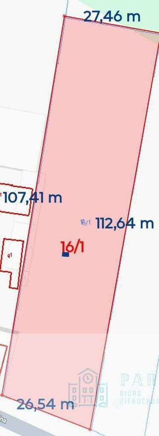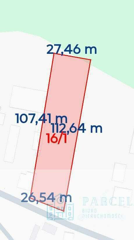 Druga działka (nr działki 16/1 prostokąt) ma powierzchnię 3000m2.